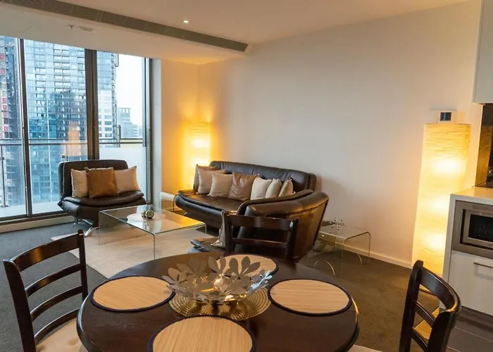 2 Bedroom Apartment With City Views Melbourne, di 65 m^2, si trova in una zona residenziale, a una distanza di 850 metri dal Cattdrale di St. Paul e a 200 metri dall'Acquario SEA LIFE di Melbourne. Gli ospiti possono fare un tuffo nella piscina riscaldata per rilassarsi dopo una lunga giornata.